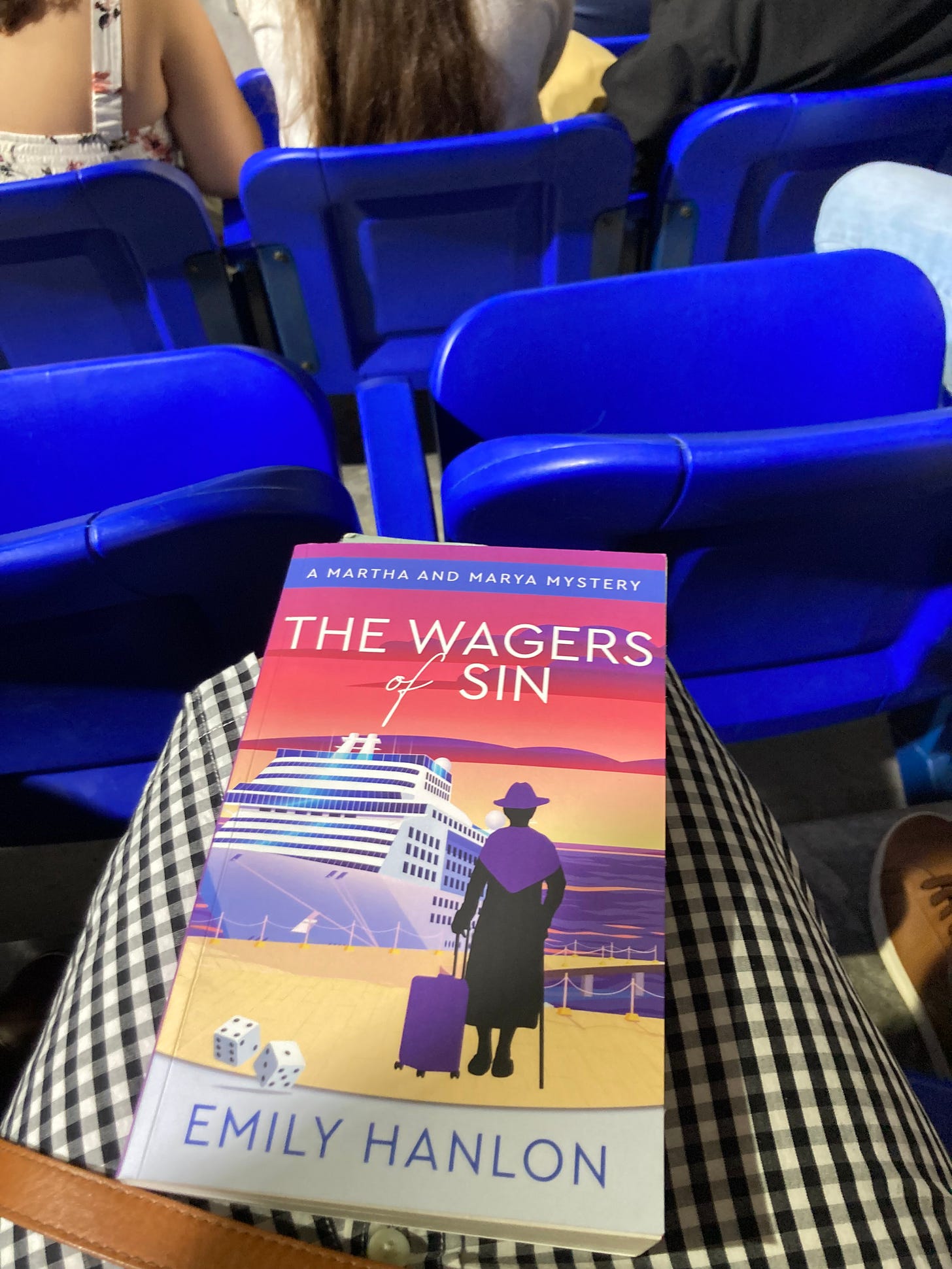 My husband and I brought books along to graduation because we’d had to drop our daughter off early. Before the ceremony, as two young women in long sequined dresses performed Ed Sheeran songs on the floor of the arena and pictures of smiling undergraduates cycled by on the jumbotron overhead, I was engrossed in the third installment of Emily Hanlon’s Martha and Marya mystery series, The Wagers of Sin. A young, handsome cruise ship employee was about to marry an elderly woman of enormous wealth. Helen Holmes, the octogenarian bride, had slumped in her wheelchair moments before pronouncing her vows when …